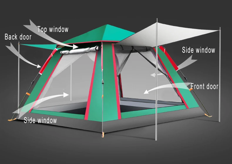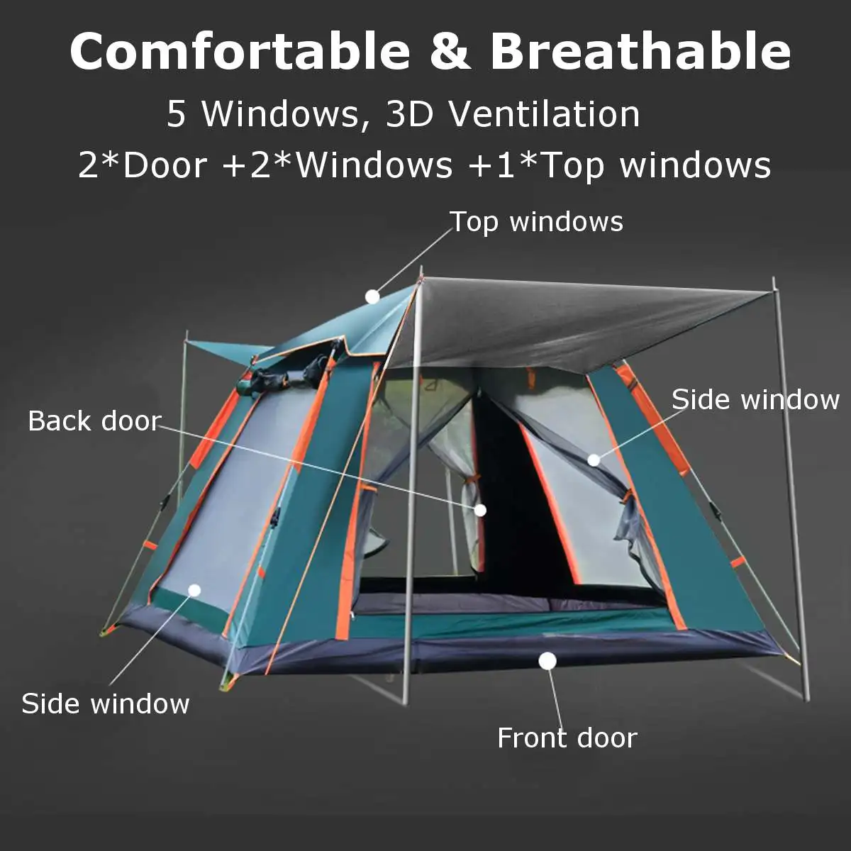 Автоматическая походная двухслойная палатка, самораскладывающаяся, водонепроницаемая, на 3-4 человек, для пешего туризма, путешествий