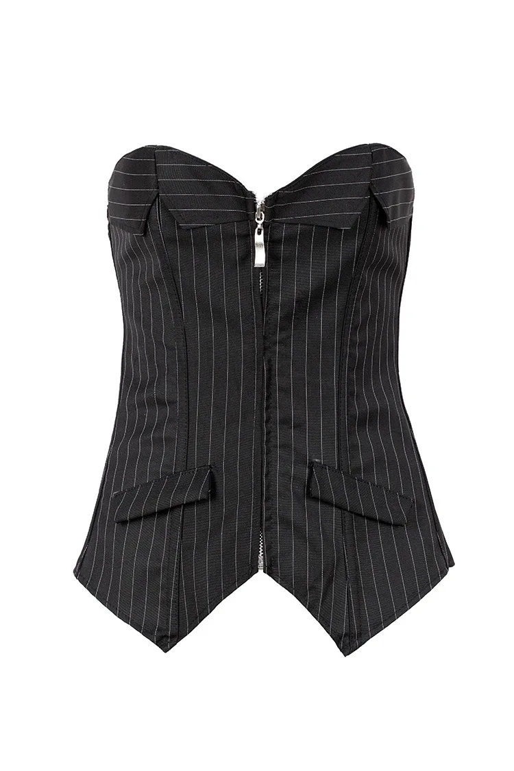Пикантные черные сапоги в полоску Overbust Корсеты Офисные женские ...