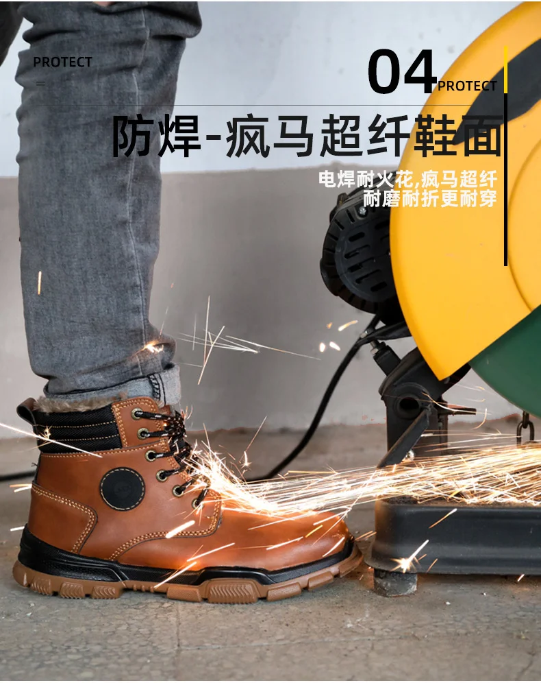 Зимние мужские защитные ботинки, плюшевая мужская защитная обувь, теплые защитные ботинки, защита от ударов, Рабочая защитная обувь, походные ботинки для верховой езды YIZHONCO