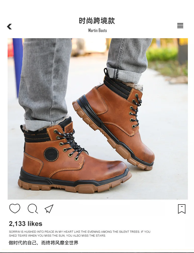 Осенняя защитная обувь с подушкой, мужские ботинки, модные рабочие ...