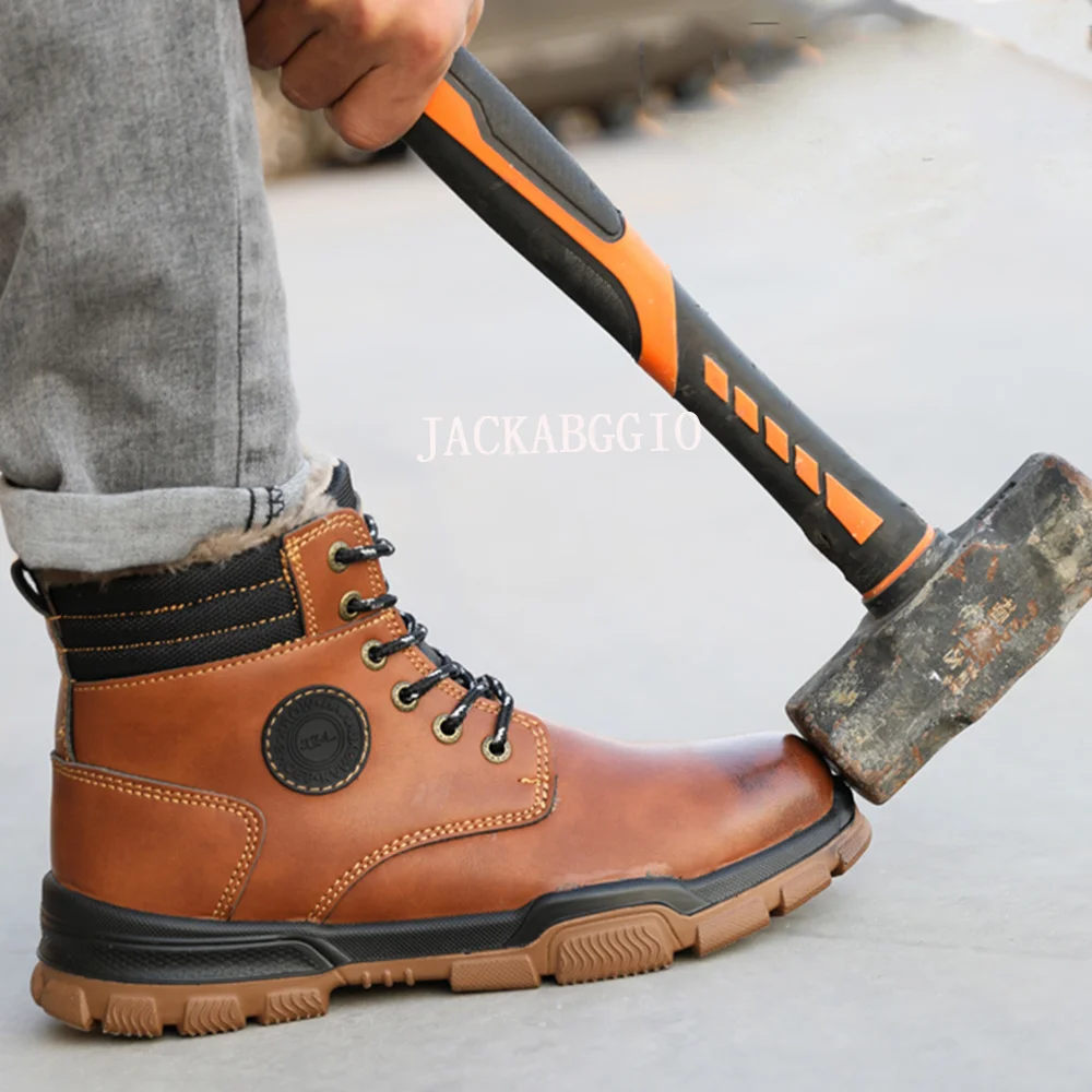 Зимние мужские защитные ботинки, теплые рабочие мужские ботинки со ...