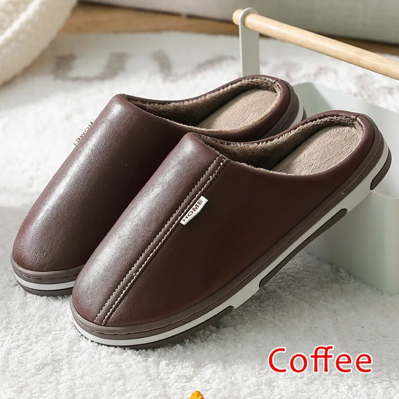 Мужские Водонепроницаемые домашние тапочки из ПУ кожи, на толстой подошве
