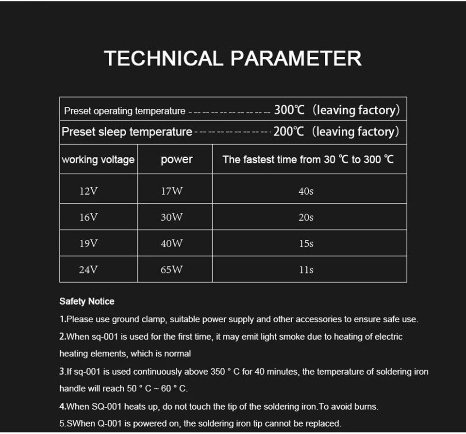 Может работать при напряжении 12-24 В постоянного тока. Дисплей OLED, ключевая регулировка температуры, внешний независимый источник питания. В постоянном токе 19 в 40 Вт, повышение температуры 15 секунд. Его задача заключается в передаче тепла на такие предметы, как провода, Транзисторные выводы и прокладки на печатные платы.