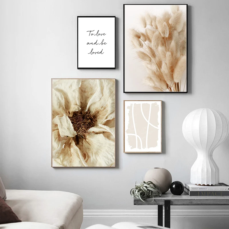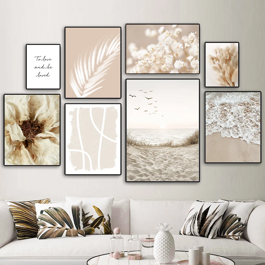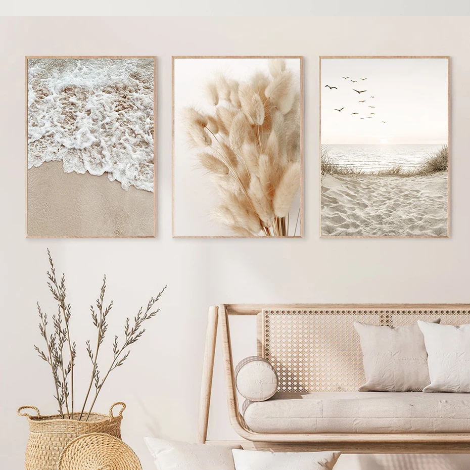 Скандинавская бежевая тростниковая трава, картины на холсте, птицы,...