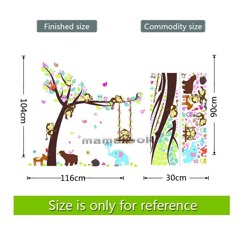 Лесные животные, наклейки на стену, обезьяна, медведь, дерево для д...