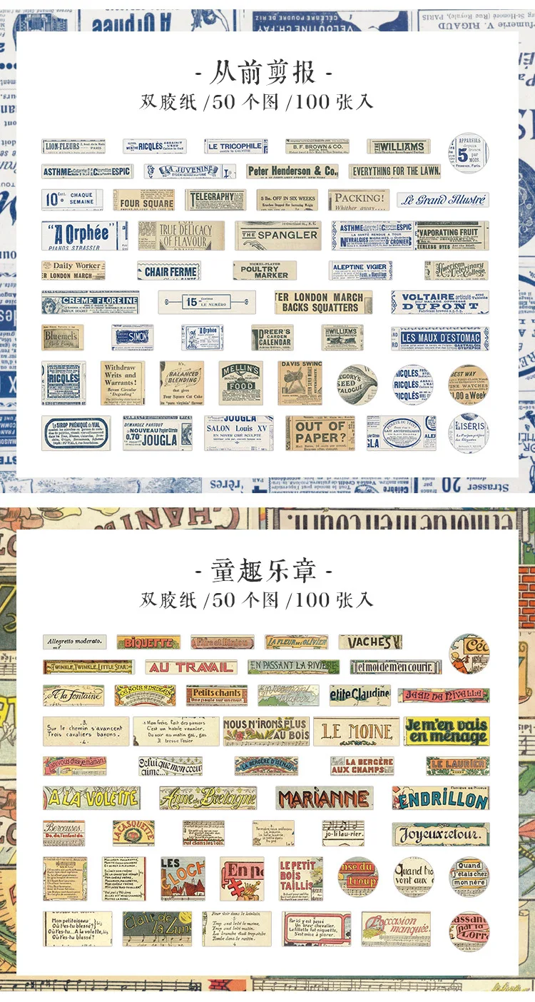 Набор винтажных стикеров для скрапбукинга, 100, шт.упак.