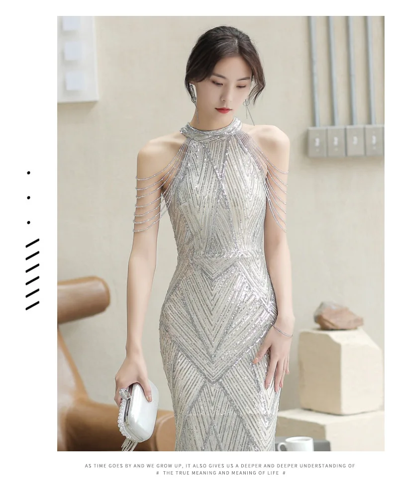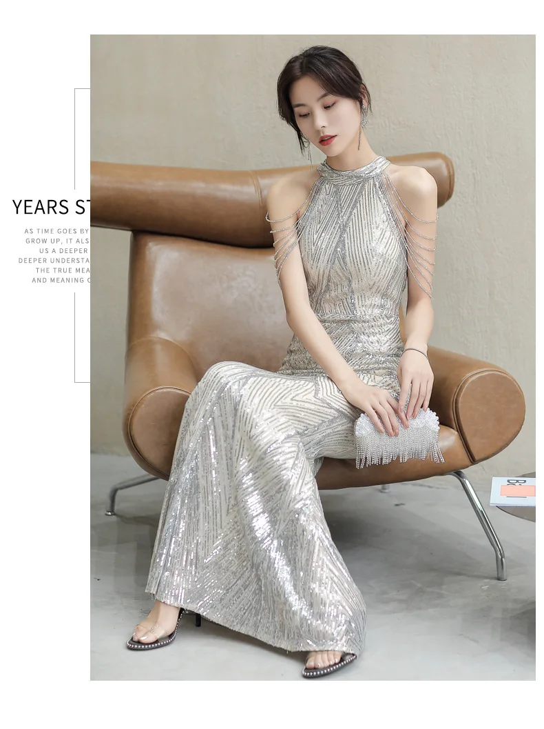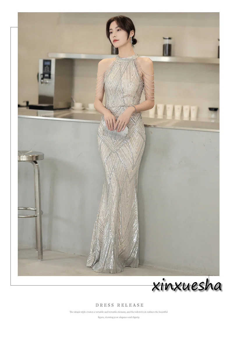 Женское длинное платье-русалка, серебристо-золотистое платье в полоску с блестками, платье для выпускного вечера и вечеринки, для танцев и представлений, бесплатная доставка