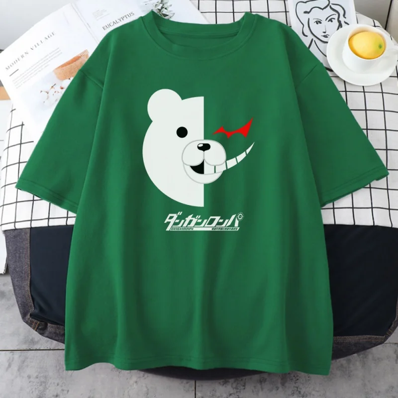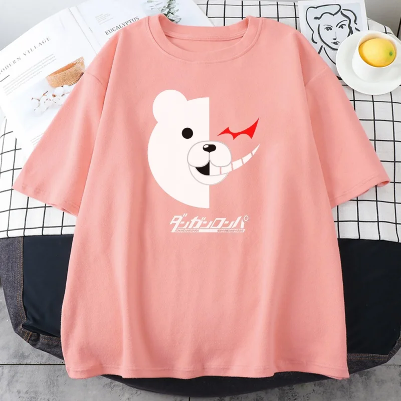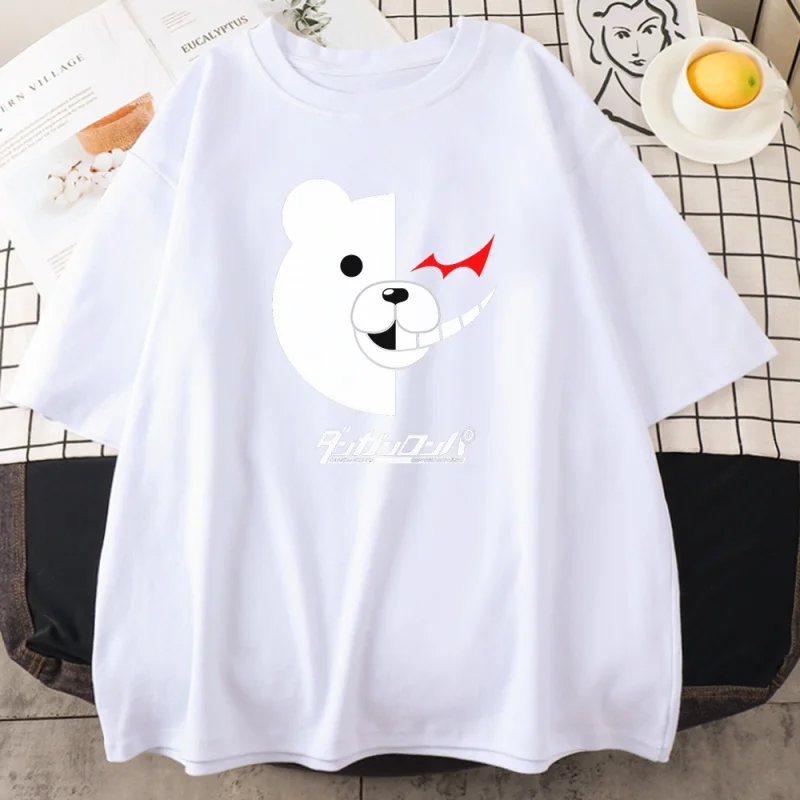 Женские футболки с принтом черного и белого медведя Danganronpa, весенне-летние свободные топы, футболки с коротким рукавом, Модная стильная женская футболка