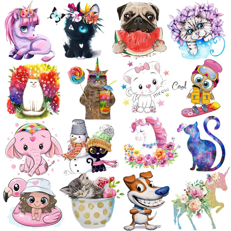 Мультяшный Кот Единорог серия наклейки утюгом Переводные виниловые термонаклейки для глажки футболки термопатчи для одежды