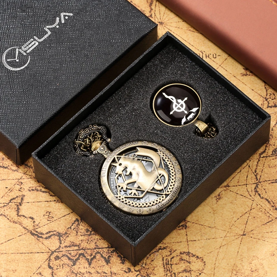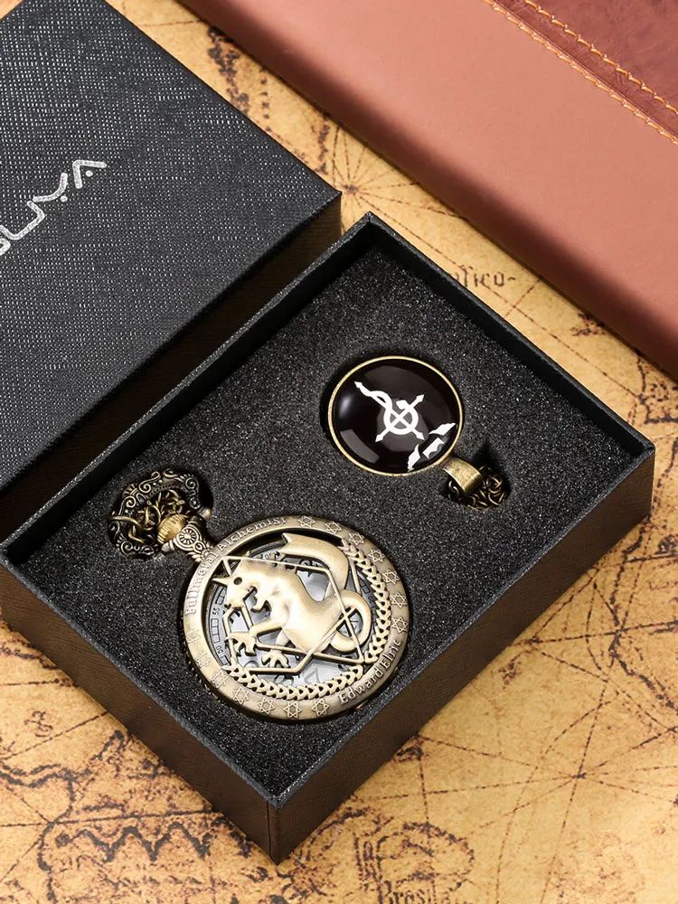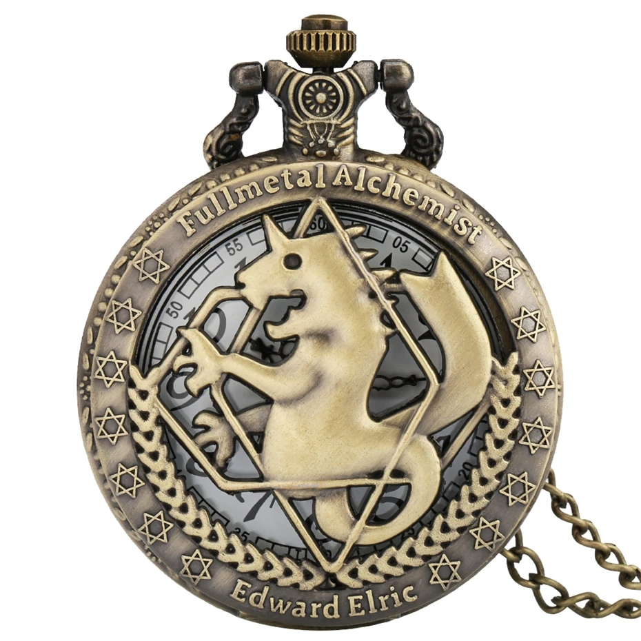 Бронзовые полые Стальной алхимик карманные часы набор в подарочной коробке косплей Эдвард Элрик Аниме ожерелье кулон дизайн Япония Аниме часы