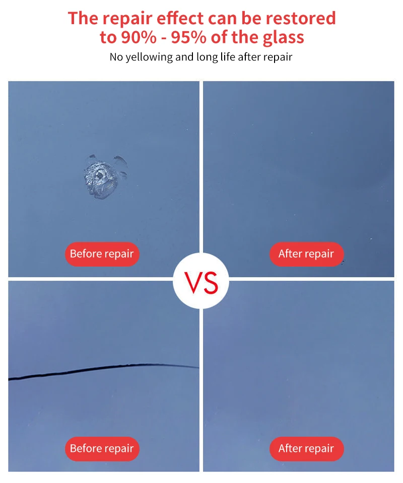 * 1. После повреждения закройте область прозрачной лентой, чтобы предотвратить попадание влаги и грязи в поврежденную область.* 2. Повреждения должны быть устранены как можно скорее, чтобы избежать рассеивания мелких трещин.* 3. Идеальная температура нанесения составляет от 60 до 90 ℉ (от 15 до 32 градусов по Цельсию). Клей высохнет под ультрафиолетосветильник Том, если у вас нет ультрафиолетового светильник ения, выполните ремонт под солнцем.* 4. Для правильного ремонта поверхность должна быть чистой и сухой.* 5. Не подвергайте воздействию клея, если нет необходимости его использовать.* 6. Важно! Чтобы снизить риск химического контакта с кожей и глазами, следует надевать защитные очки и перчатки при использовании этого продукта.