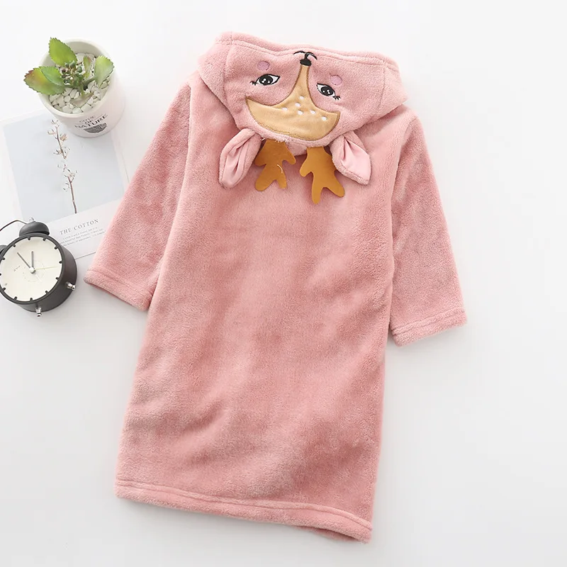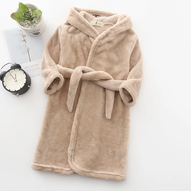 Халат детский, фланелевый, с капюшоном, для мальчиков и девочек