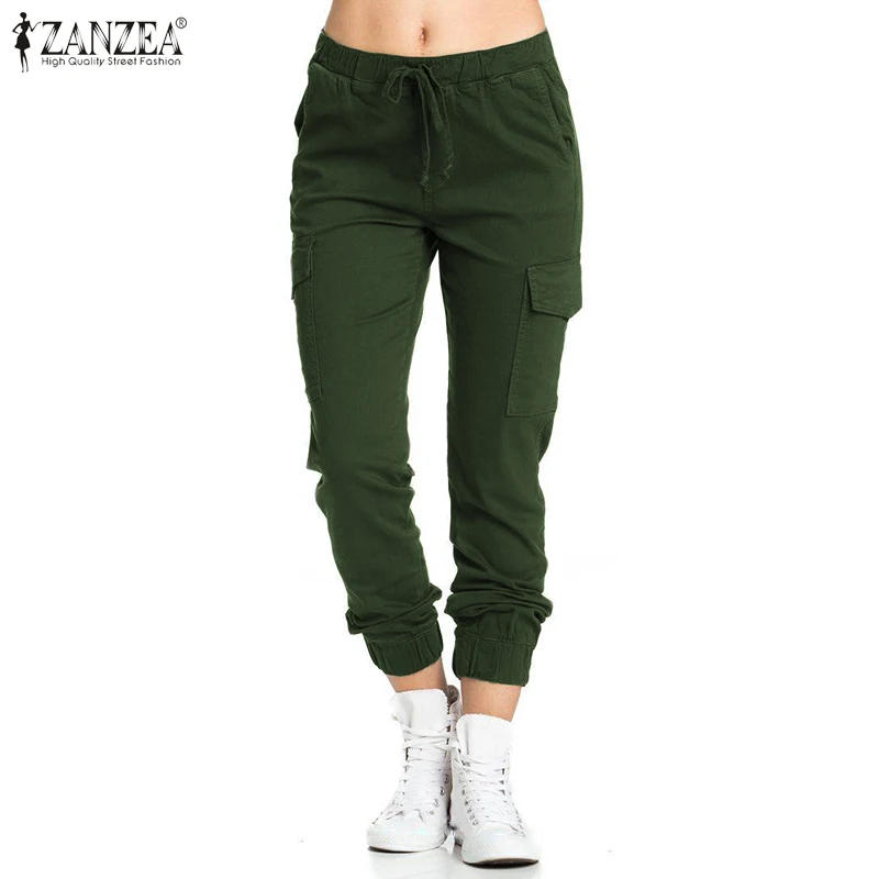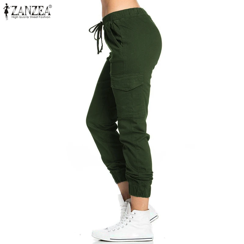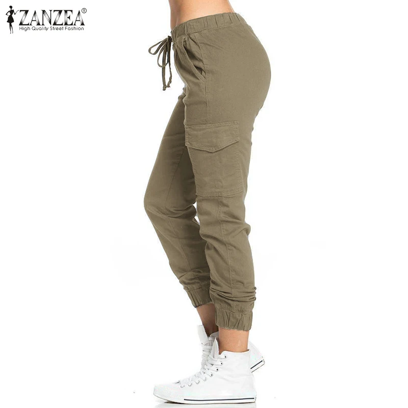 Женские офисные длинные брюки ZANZEA на шнуровке с эластичным поясом, повседневные свободные брюки с карманами, женская уличная одежда, 2020