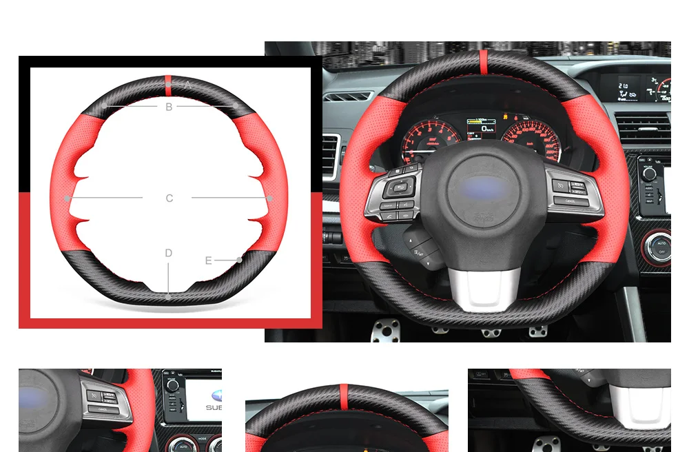 A: Красный МаркерB + D: черный матовый PU углеродное волокноC: красная перфорированная искусственная кожаE: Красная Нить