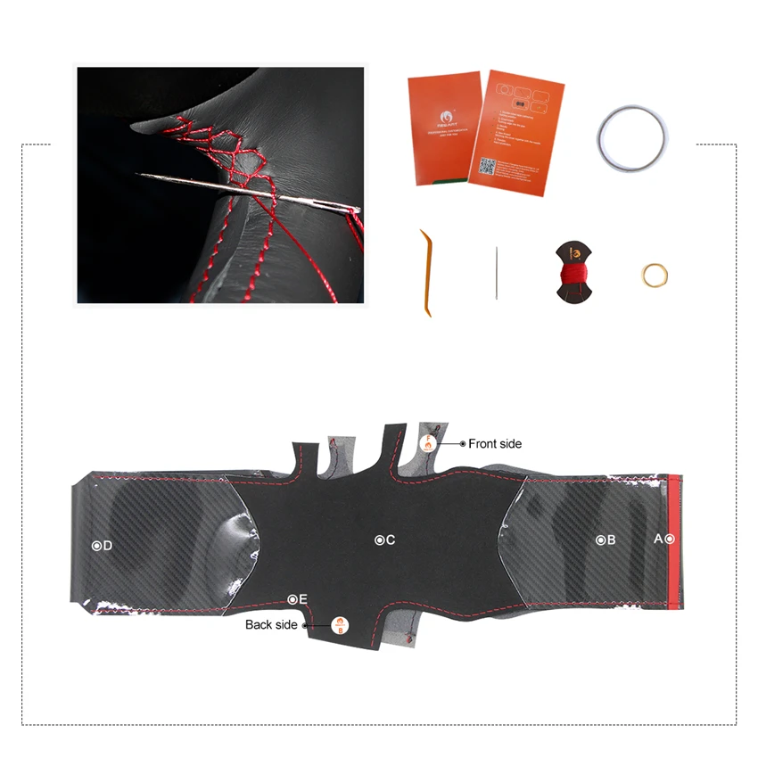 A: черный маркерB + D: красное глянцевое полиуретановое углеродное волокноC: черная искусственная кожаE: Красная Нить