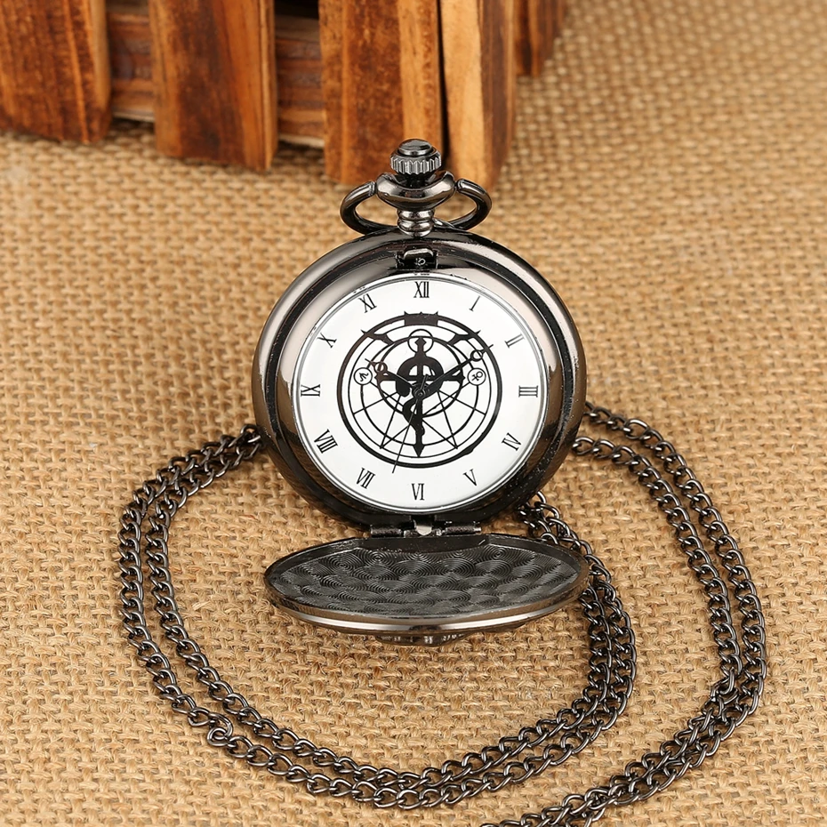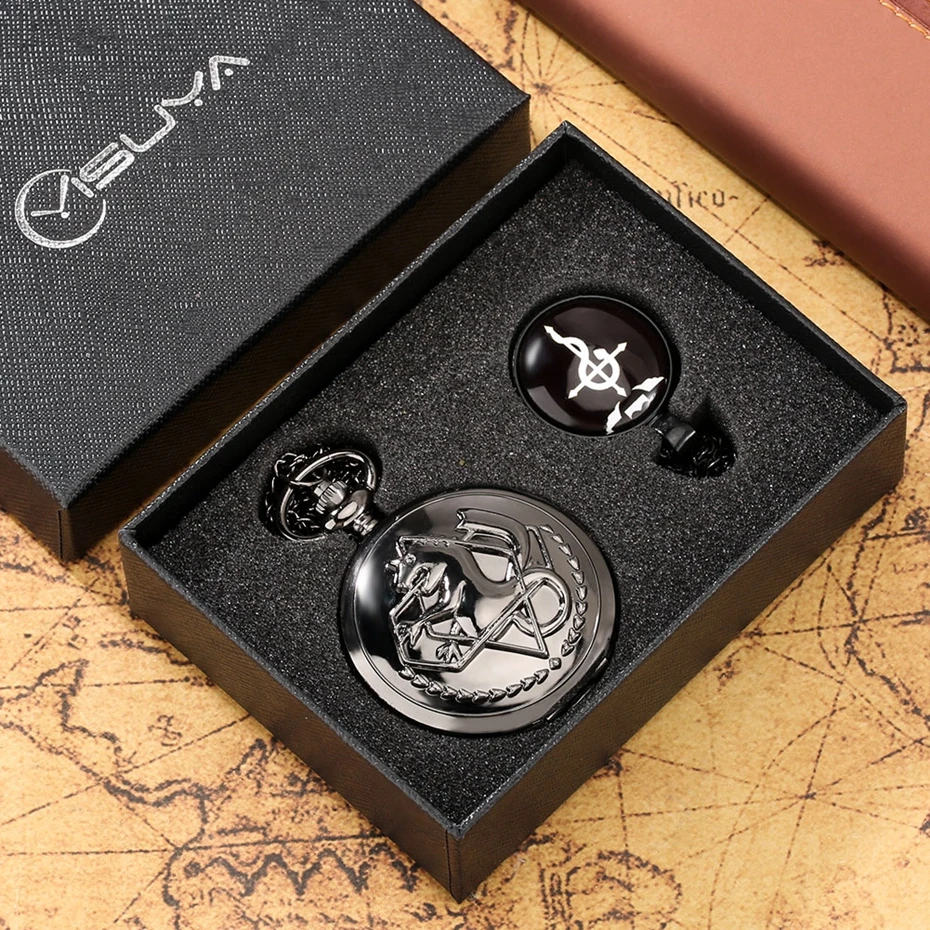 4 шт.компл. Алхимик кварцевые карманные часы подарочный набор с черным цельнометаллическим алхимичным ожерельем подвеска Дизайн Япония Аниме часы коробка наборы