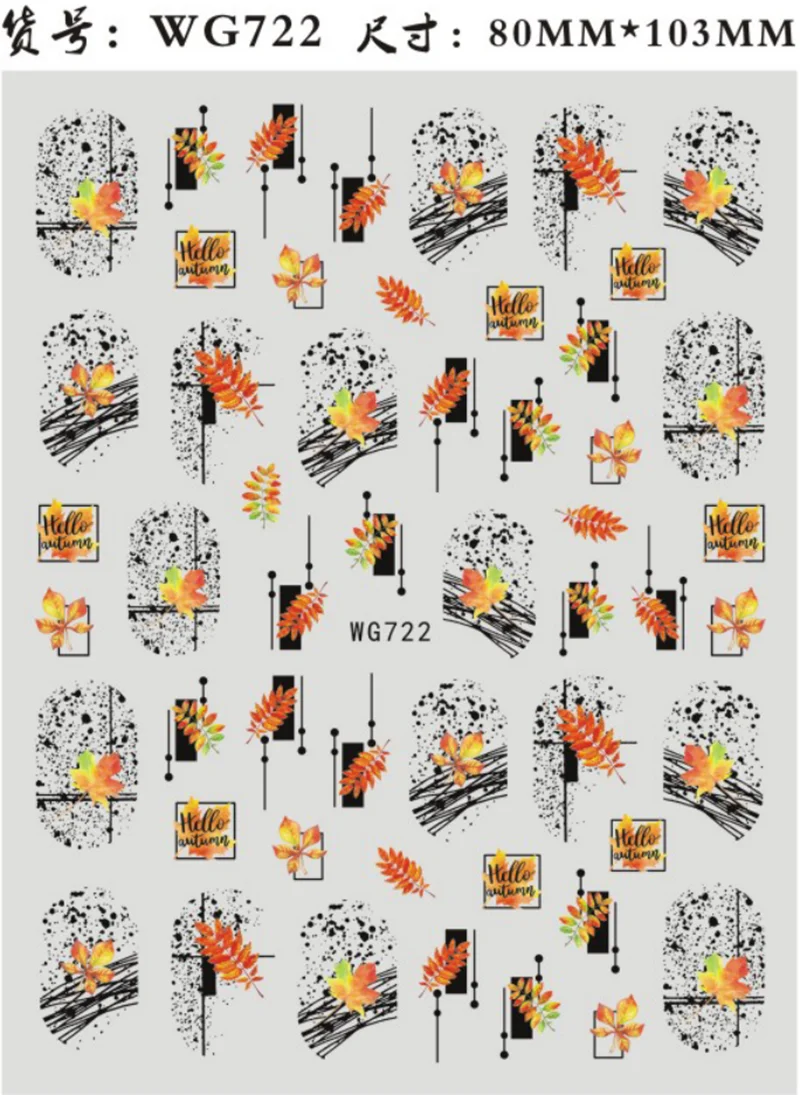 Переводные наклейки для ногтей, Осенние кленовые листья, наклейки из фольги для ногтей, художественное оформление ногтей