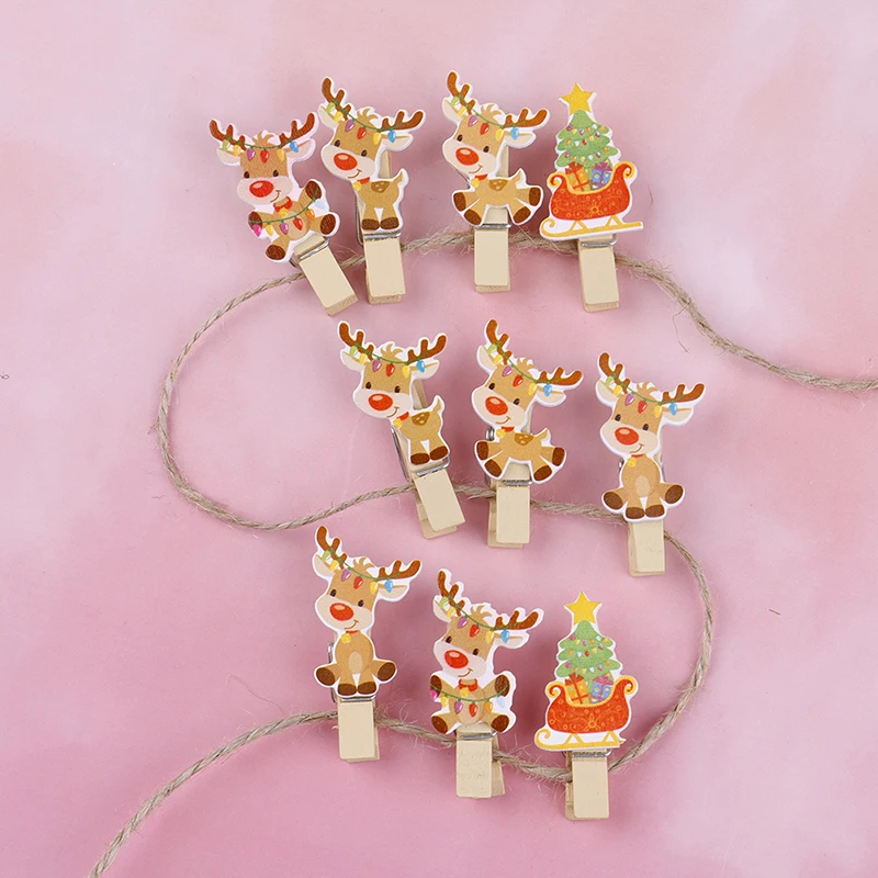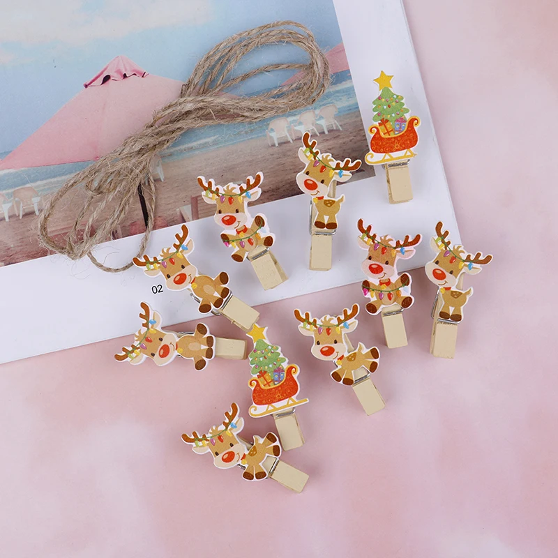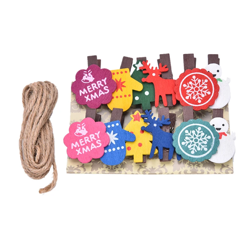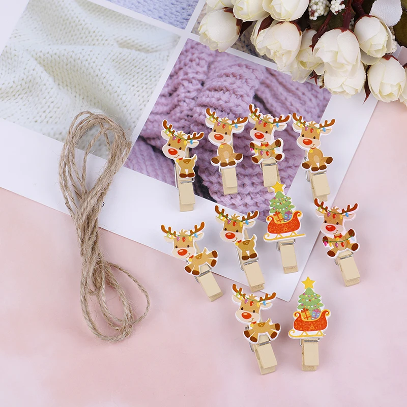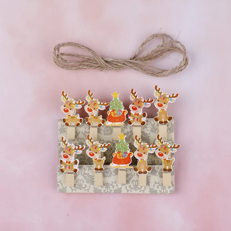 12 шт. пеньковая веревка Рождественский зажим деревянные зажимы для рождественской елки мини деревянная одежда фото бумажная прищепка заколка для рукоделия зажимы с веревкой