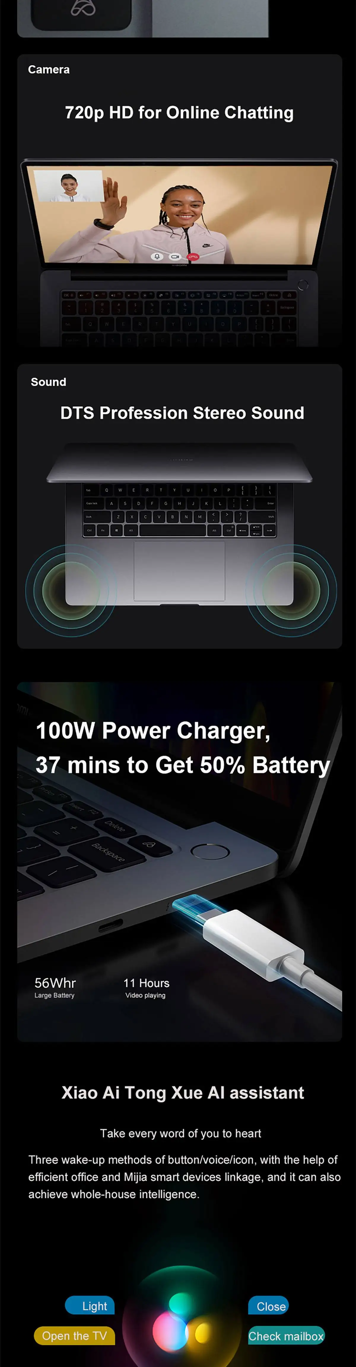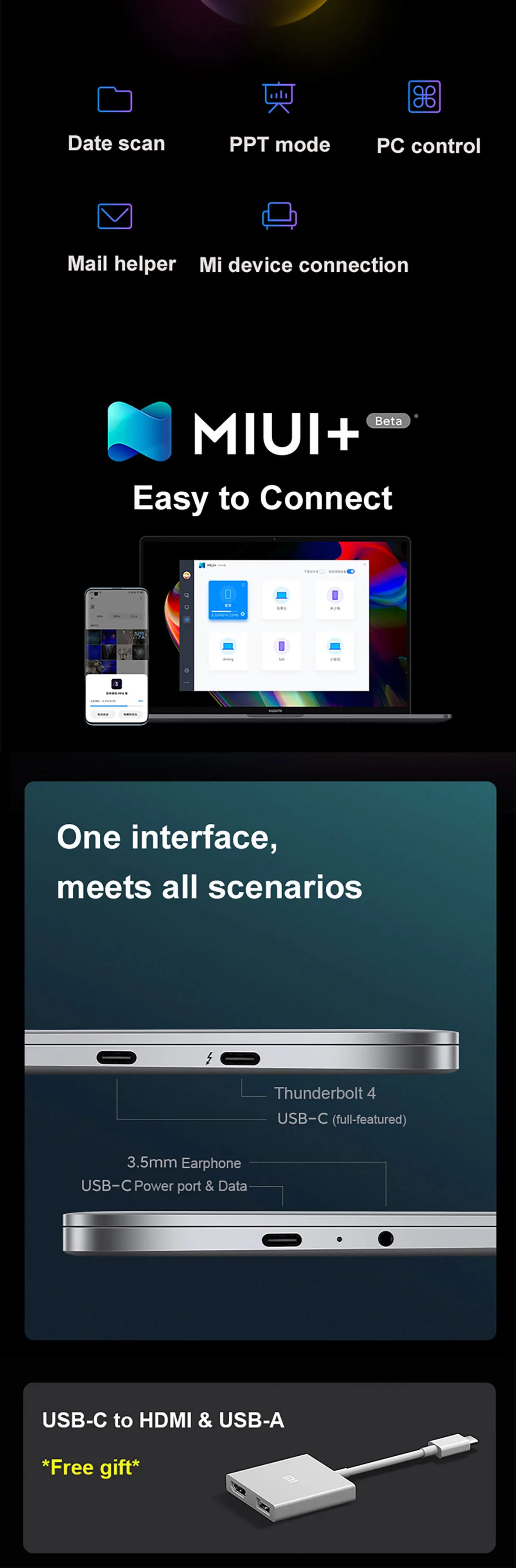 Принятый в 14,0 дюймов 2,5 K 100% sRGB 16:10 300 нит главный экран, самых красивых и реальные фотографии, которые вы можете поймать с гироскутером Xiaomi pro 14 ноутбук. С изображением популярного 11th Intel Core i7-11390H 5,0 ГГц Максимальная частота и мощная NVIDIA GeForce MX450 35 Вт цельной крови заключается в том, чтобы выдает более удивительной производительностью для многозадачности и детали оплаты вперед. Другие функции показаны следующим образом: