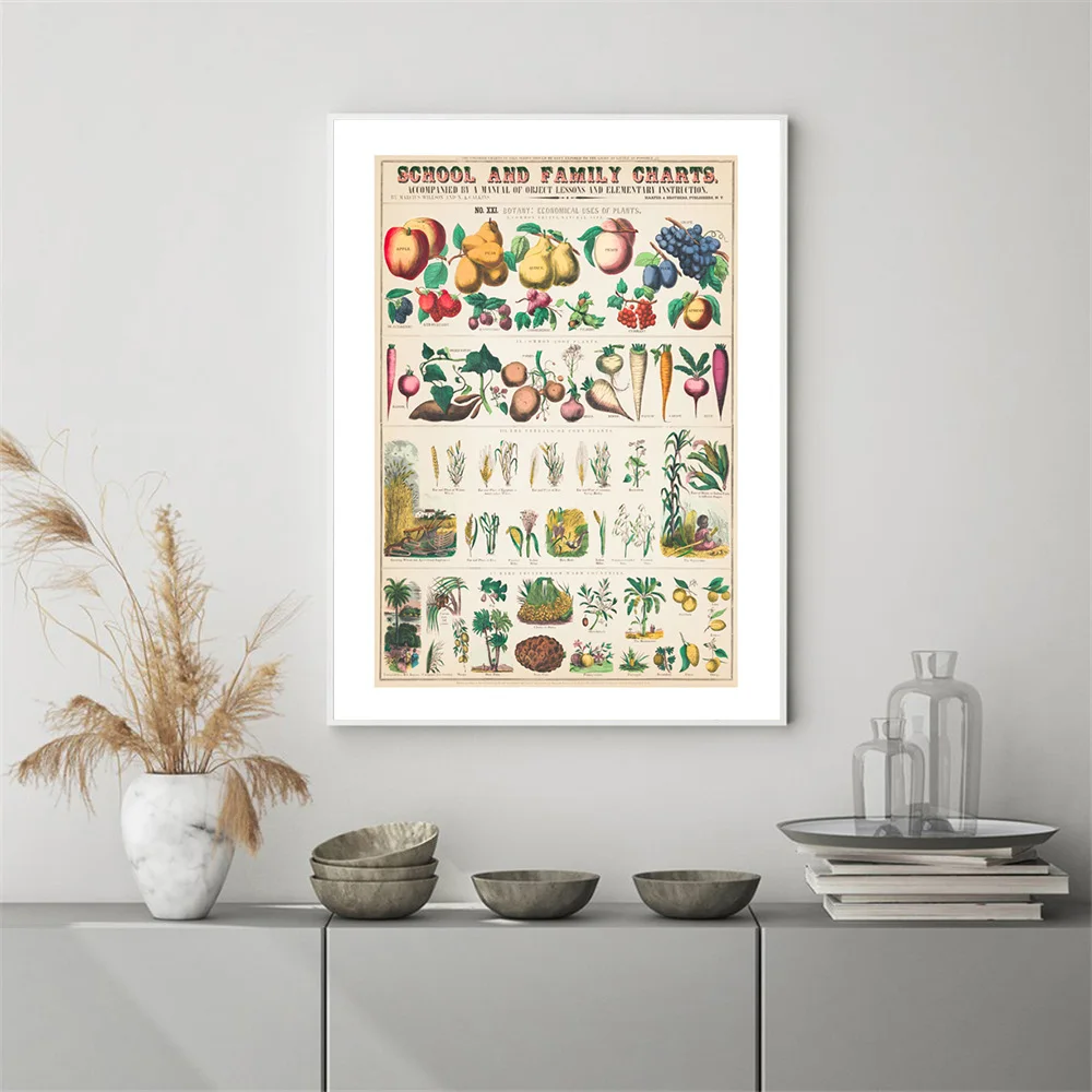 Винтажный настенный плакат в виде овощей и фруктов, художественный принт в виде грибов, античная Картина на холсте, ботаническая Скандинавская картина, плакат, кухонный Декор