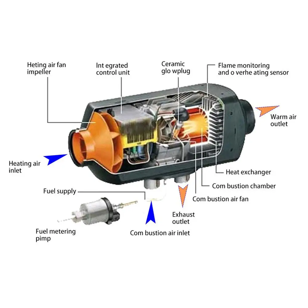 1. Он может обеспечить источник тепла для автомобиля, улучшить температуру внутри автомобиля, и подогрев охлаждающей жидкости двигателя, чтобы избежать износа двигателя при низкой температуре. Способствует размораживанию салона автомобиля, запуску автомобиля, размораживанию стекла автомобиля в тумане.
