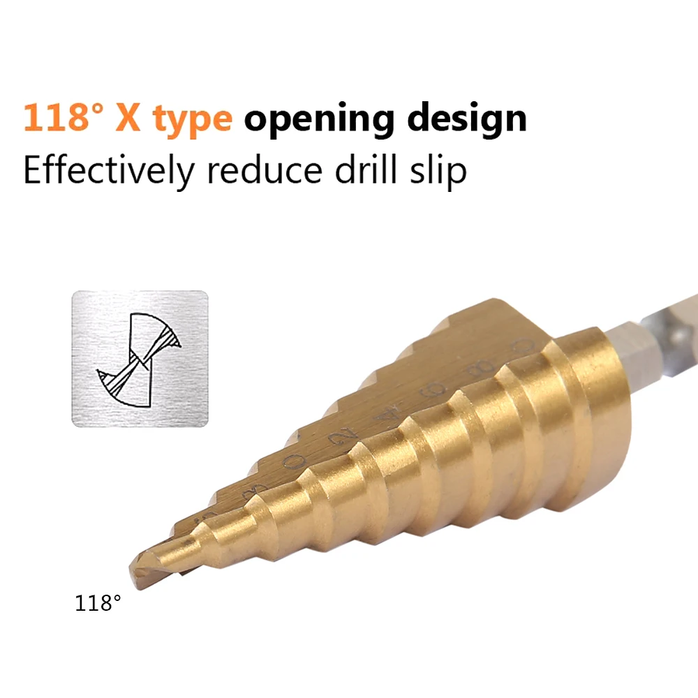 Ступенчатое сверло из быстрорежущей стали с титановым покрытием, 1 ...