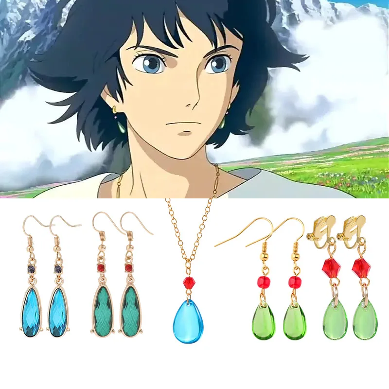 Аниме серьги Miyazaki Hayao, висячие серьги с подвесками из хрустального камня и воющего синего и зеленого цвета, серьги-капли для косплея