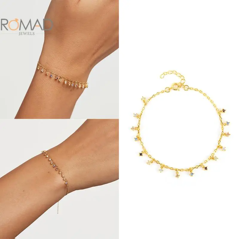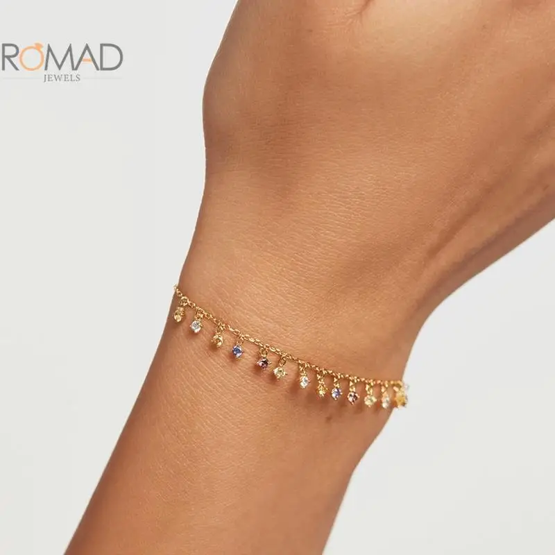 Браслеты ROMAD с разноцветными бусинами из циркония для женщин и девушек, подарок на вечерние ринку, изящные свадебные украшения, подвески, браслеты с Шармами