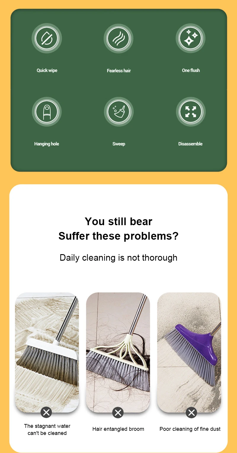 Эта метла предназначена не только для ежедневного подметания, но и для быстрого удаления водяных пятен и может очистить стеклянные поверхности, не оставляя царапин и шерсти домашних животных, не прилипая и легко моется.