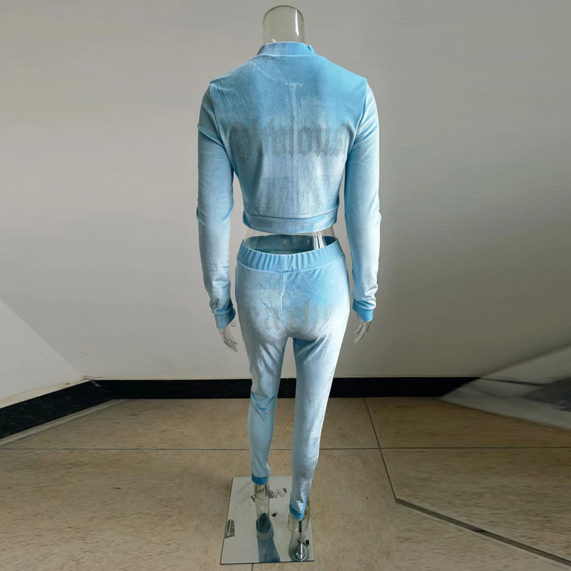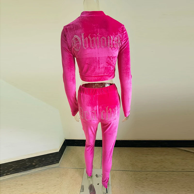 Женский комплект из 2 предметов, стразы с надписями, тонкие бархатн...
