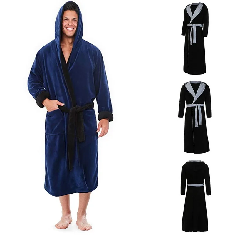 Халат мужской, женский, фланелевый, с V-образным вырезом и длинным рукавом