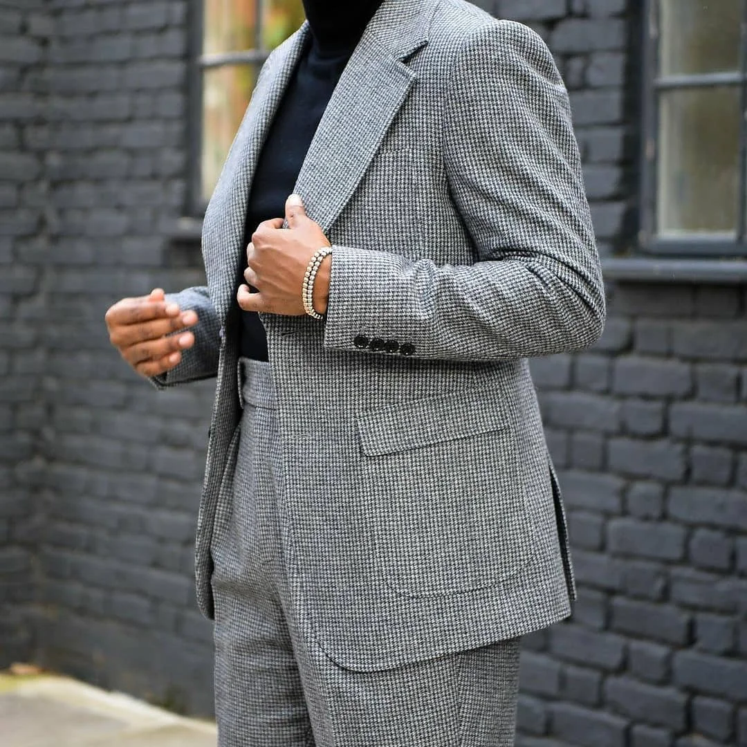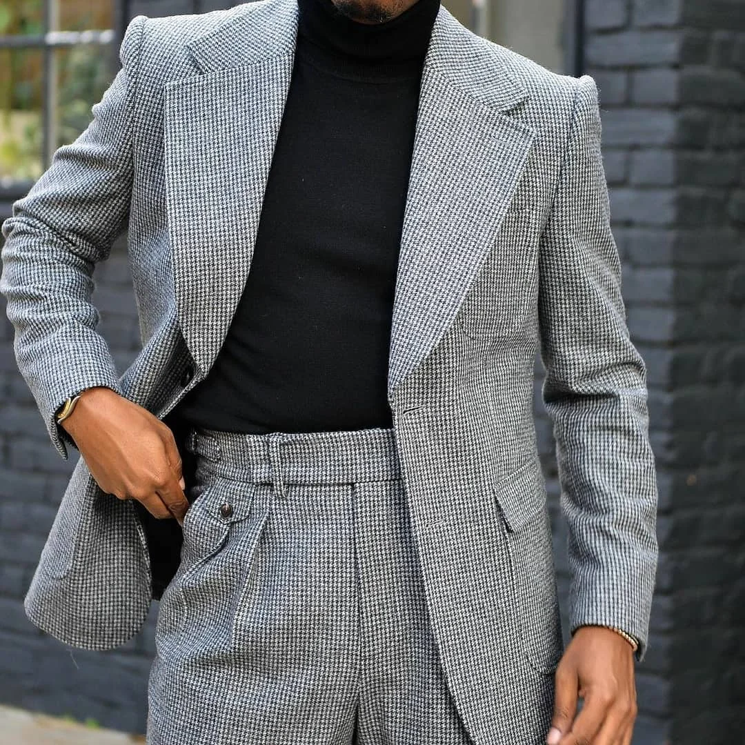 Мужской деловой пиджак в елочку из 2 предметов, свадебный смокинг, приталенный костюм, блейзер + брюки, мужской костюм