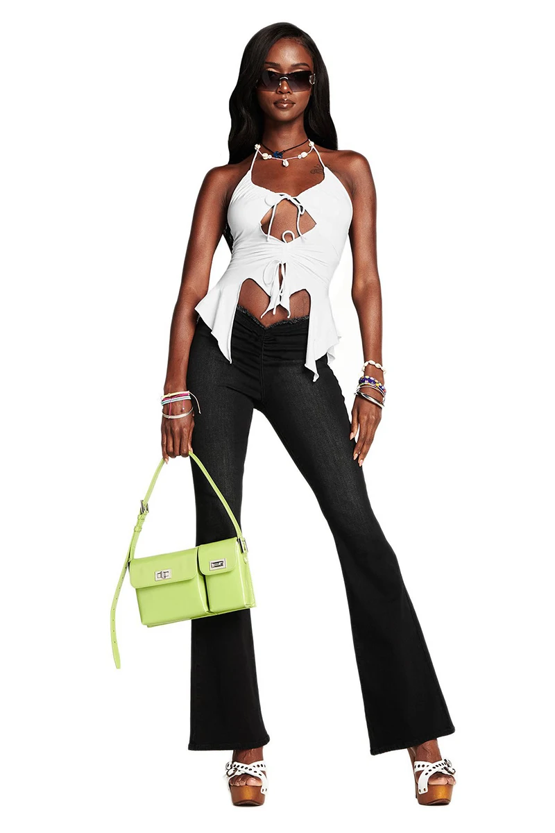 Новый продукт bella в том же стиле подтяжки Топ подвеска на шею тонкий пояс полый сексуальный небольшой жилет неправильной формы