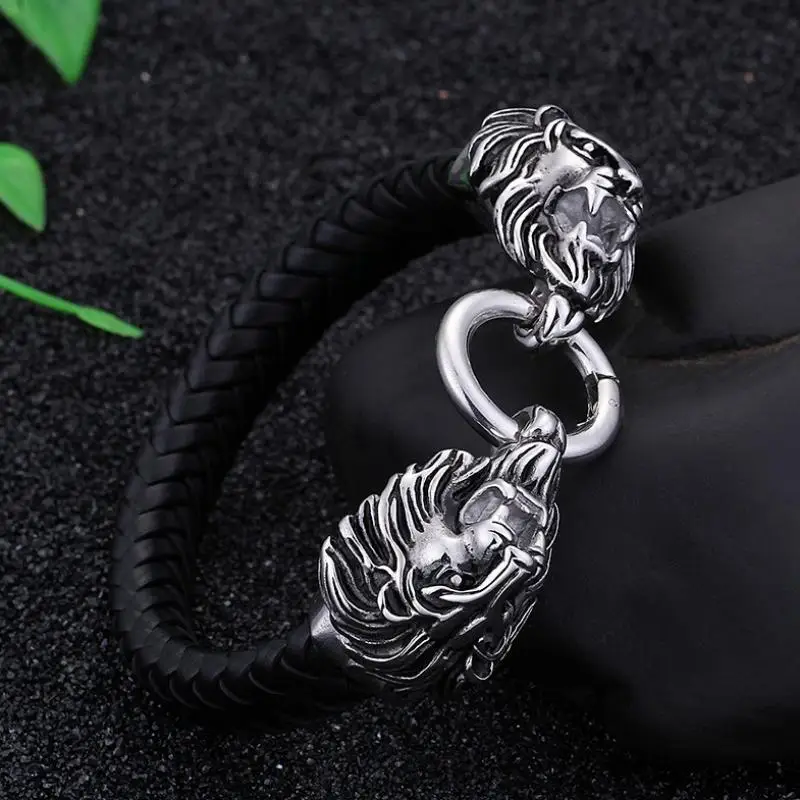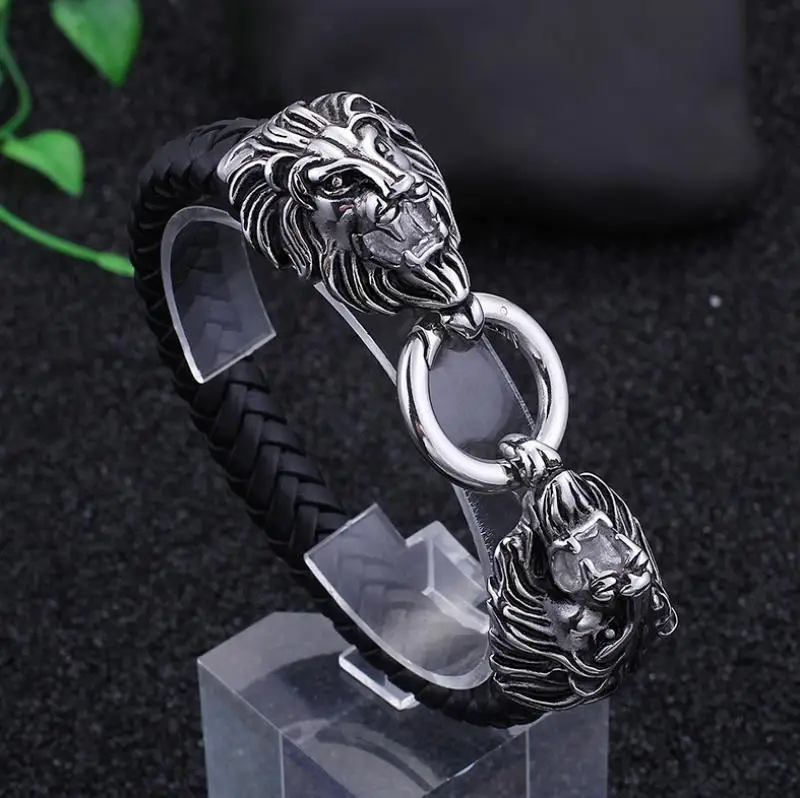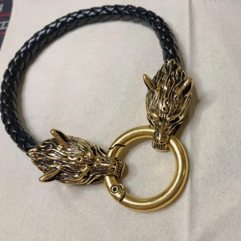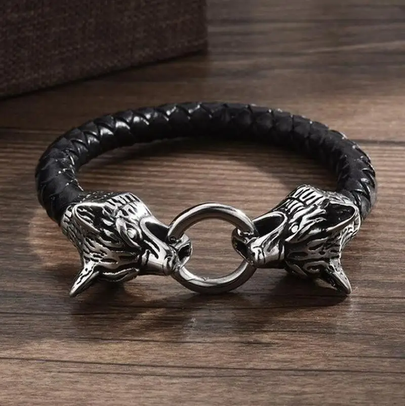 Женский браслет, кожаная веревка, цепочка, двойной волк, кусающий браслет для мужчин, амулет, подарок, ювелирные изделия