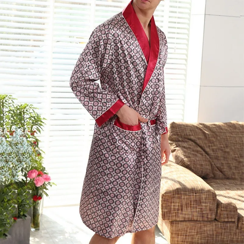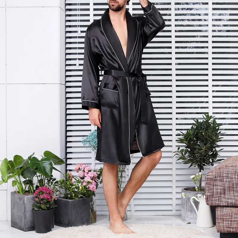 Халат-кимоно Мужской Шелковый, атласная пижама, одежда для сна, ночная рубашка, халаты с длинным рукавом, однотонный удобный благородный ночной халат, халаты для сна