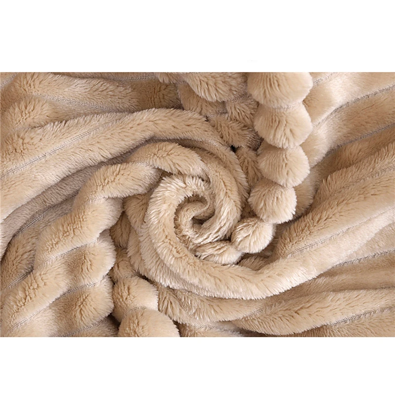 Однотонное одеяло в полоску, Фланелевое мягкое флисовое покрывало для взрослых, зимнее теплое пушистое постельное белье, покрывало для дивана, спальни