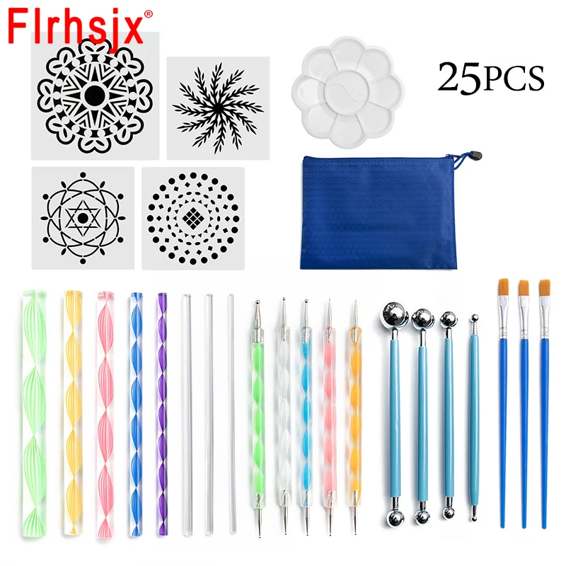 Набор инструментов для точек с рисунком мандалы, 25 шт., набор точек для тиснения, ручки для точек, кисть, акриловые стержни, инструменты для рисования камнями, сумка сделай сам