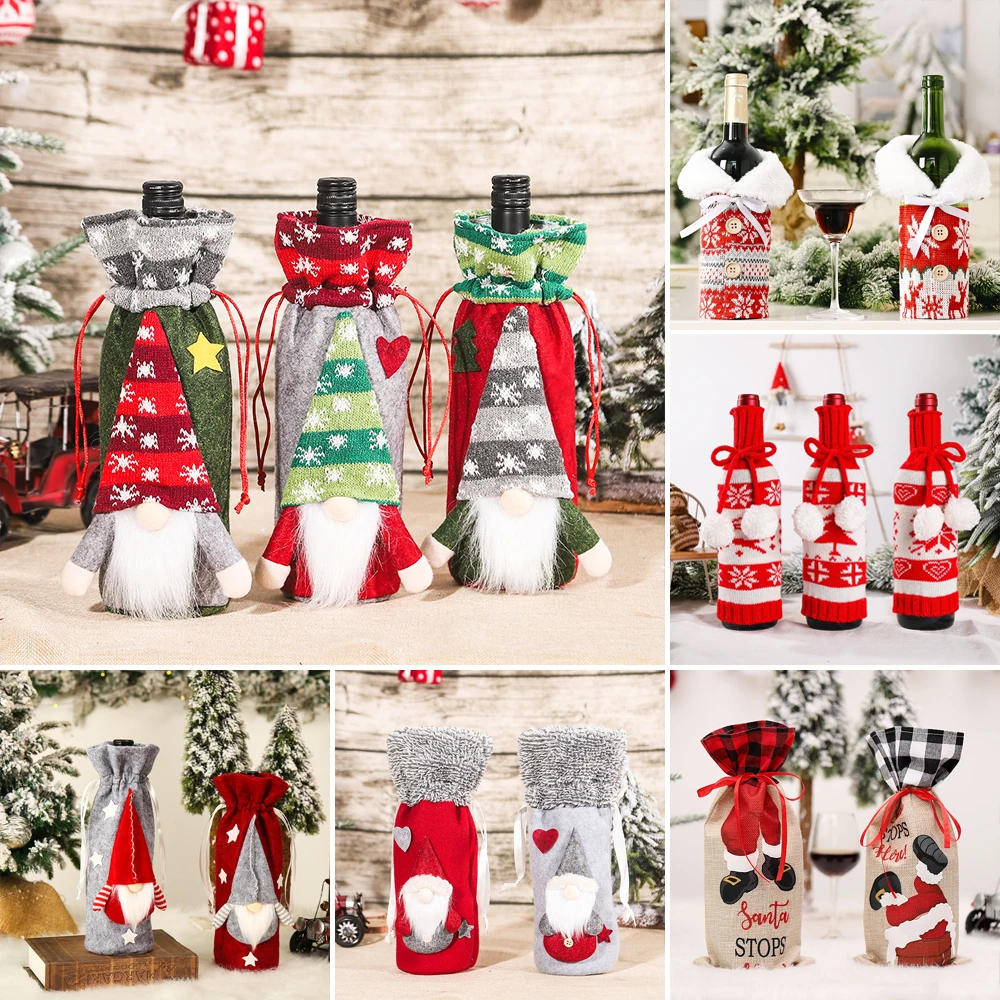 Новый год 2022 подарок новейшая Рождественская крышка от пыли для винной бутылки рождественские украшения для дома Рождество 2021 декор для обеденного стола