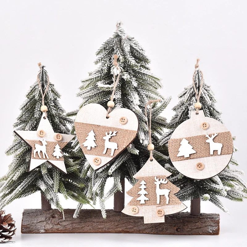 Деревянная Рождественская подвеска, пятиконечная звезда, лось, дом,...