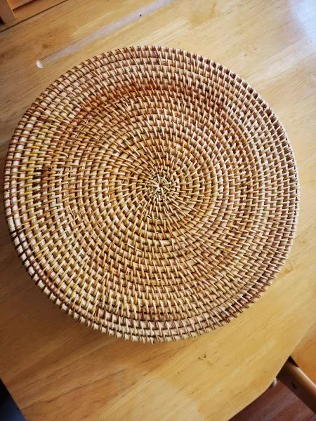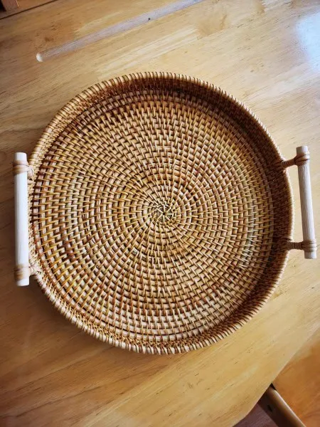 Ротанг ручной работы круглый поднос для хранения еды тарелка с деревянными ручками плетеная корзина деревянный поднос для фруктов ХлебницаЦвет: цвет древесиныСтиль: маленький, средний и большойМатериал: ротангКатегория: корзина для храненияСтиль: ПасторальРазмер продукта (ручное измерение, есть ошибки):Маленький размер 22 см в диаметре, 6,5 см Высота с ручкойСредний размер 24 см в диаметре, 6,5 см Высота с ручкойМаленький размер 28 см в диаметре, 6,5 см в высоту с ручкой