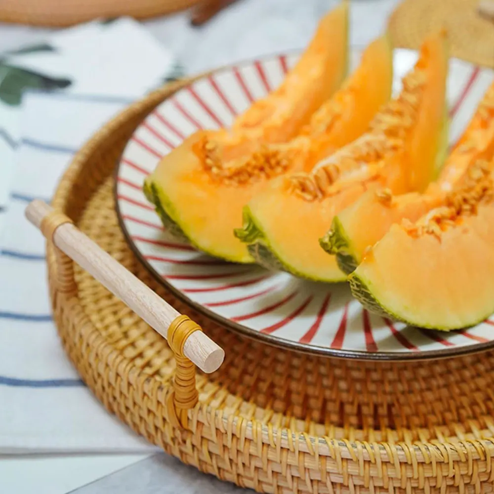 Ротанговая ручная круглая сервировочная тарелка для хранения еды с деревянными ручками плетеная корзина деревянный поднос для фруктов хлебная корзина