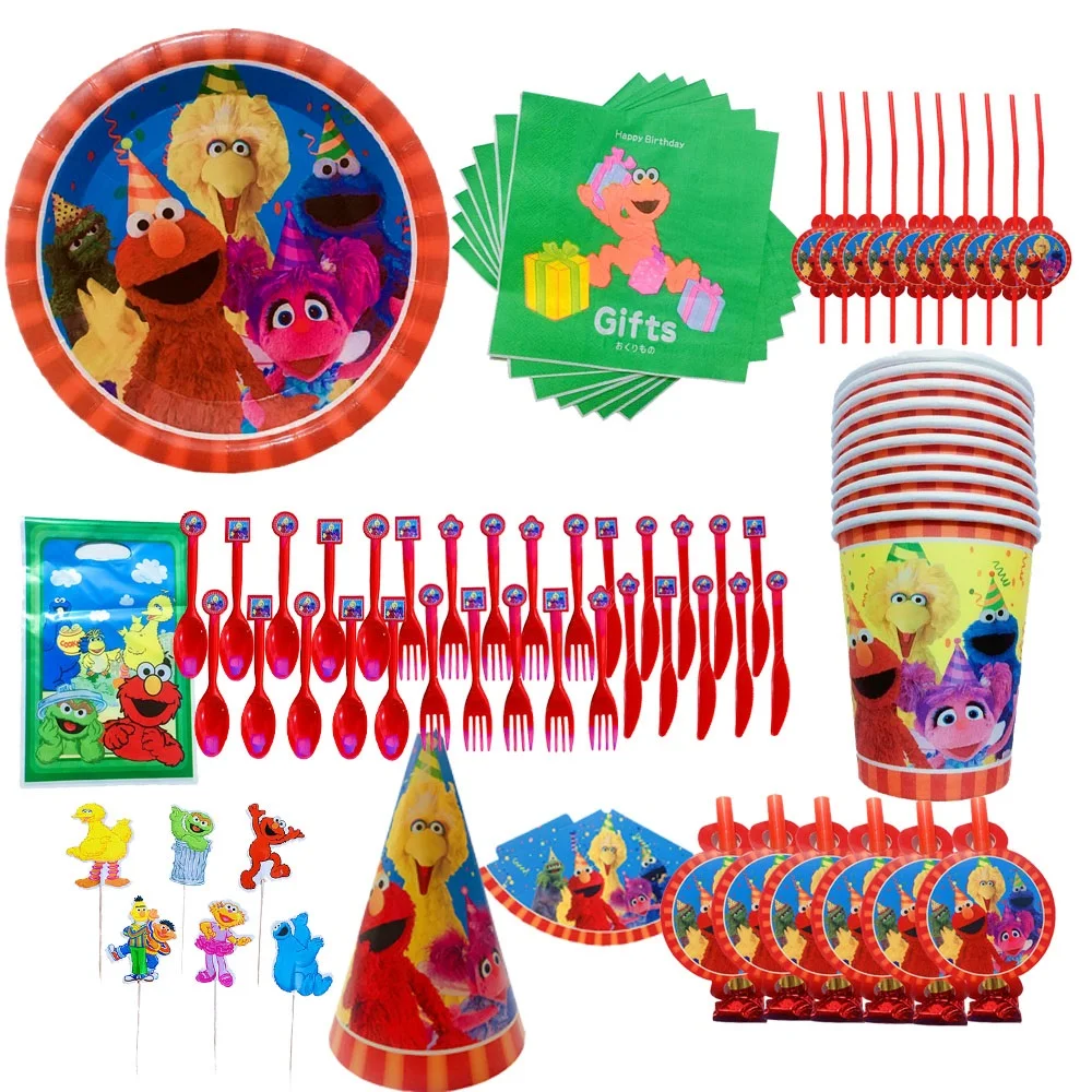 Принадлежности для вечерние Улица Сезам, фоны на тему Elmo, набор столовой посуды, салфетки для украшения дня рождения, скатерть для вечеринки