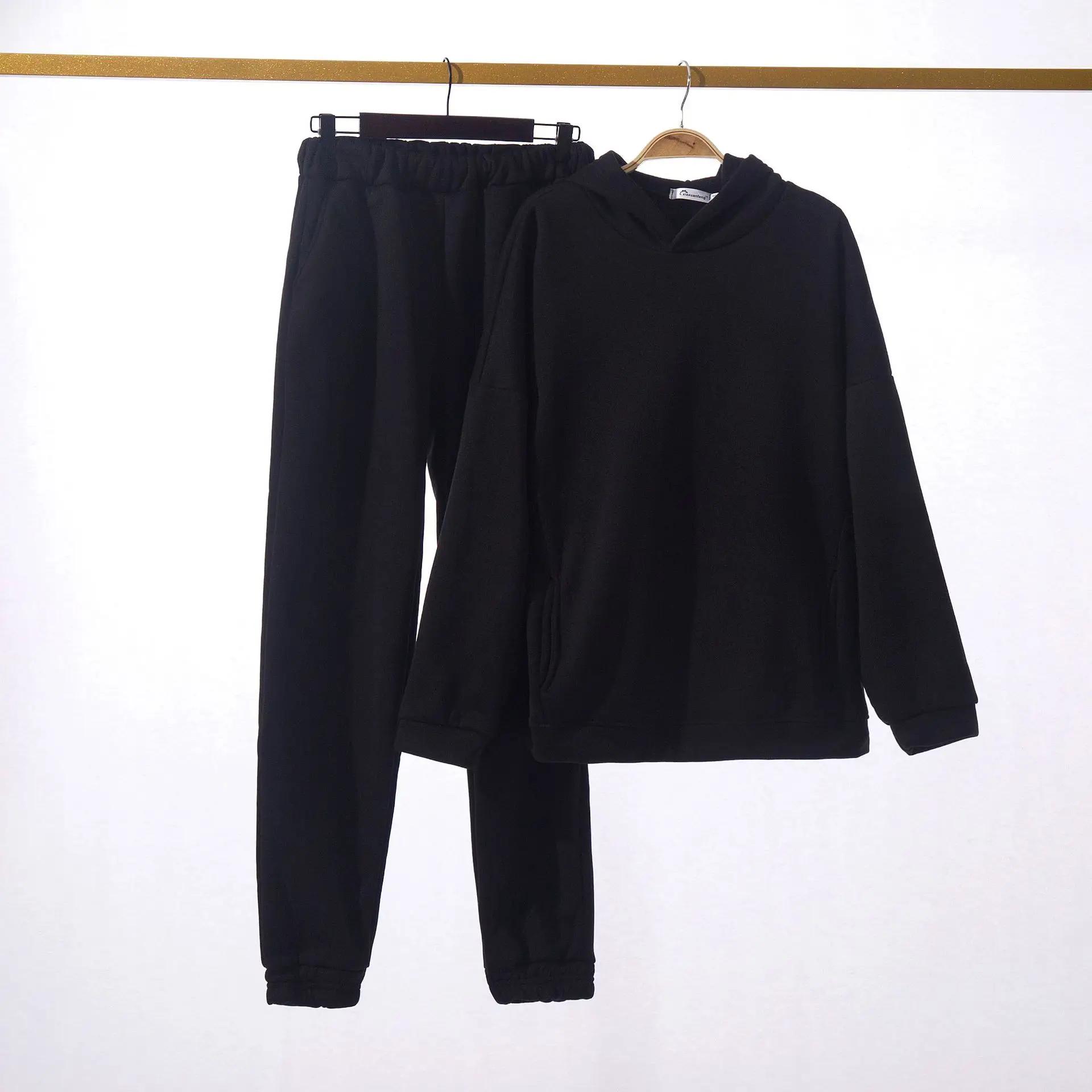 Осень-зима 2021, спортивные костюмы, женские флисовые толстовки, комплект из двух предметов, толстовка со шнуровкой и брюки, женские повседневные спортивные костюмы