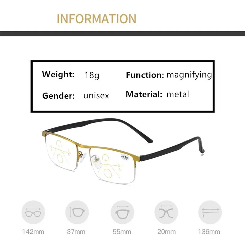 Мультифокальные очки для чтения, прогрессивные мужские и женские, мужские увеличительные пресбиопические очки, прозрачные, дальнее расстояние, анти-синий луч Tr90, полуоправа + 150