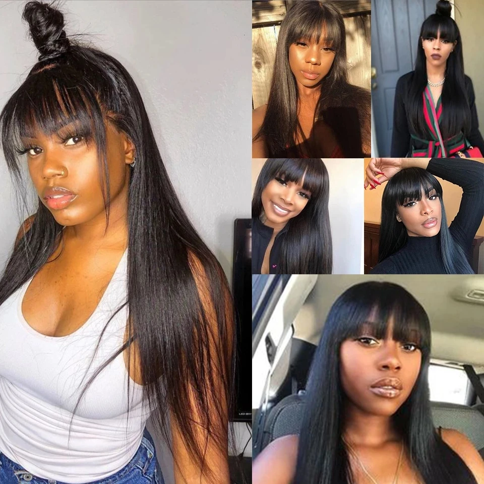 Парик Из прямых человеческих волос с челкой, Необработанные индийск...