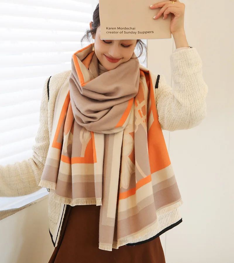 Зимний женский кашемировый шарф 2021, роскошные брендовые шали из п...