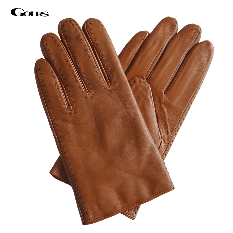 Мужские кожаные перчатки GOURS, коричневые перчатки из натуральной козьей кожи, зима 2019