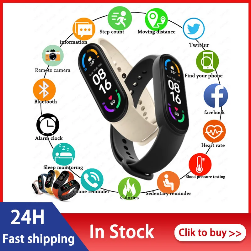 Смарт-часы Mi Band 6 для мужчин и женщин, спортивный фитнес-браслет с цветным экраном, защита IP67, для Apple, Huawei, Xiaomi