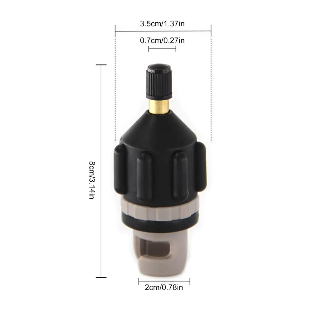 Features: 1. The adapter can make the inflator compatible with your inflatable boat or board.2. Made of high-quality plastic and alloy materials, resistant to high pressure and durable.3. Powerful sealing and leakage protection function. Excellent air leakage performance. Suitable for most inflatable boats, river rafts and kayaks.4. Useful tools Use this adapter to inflate boat with ordinary pumps, no need to buy an inflator dedicated to canoes. 5. The package includes 1pc marine air valve adapter. Specification:Material: rubberWeight: about 50gSize: about 8*3.5 cm/3.15*1.38inch Application: SUP paddle board, assault boat, rubber boat Packing List: