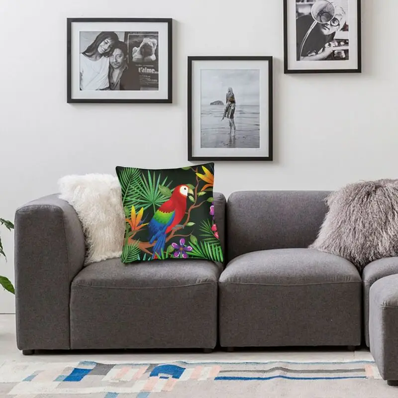 Наволочка для подушки в виде попугаев, птиц, садов, домашняя декоративная квадратная наволочка для подушки с тропическими растениями, 40x40 наволочка для гостиной